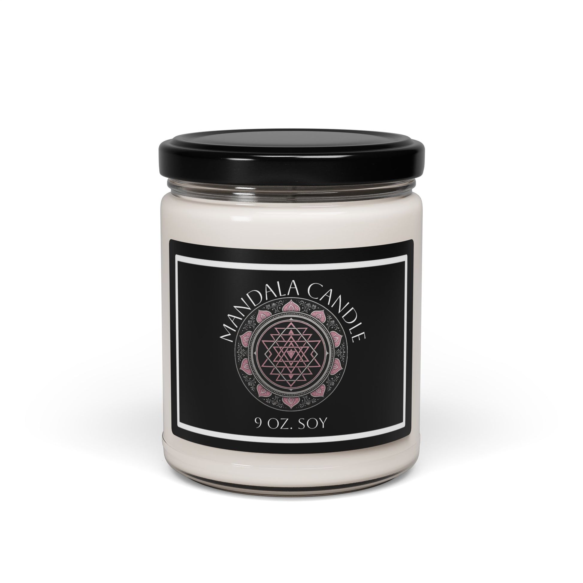 Sri Yantra Scented Soy Candle perfect for aromatherapy and meditation. This eco-friendly candle provides relaxation and soothing ambiance in any home. Ideal gift for those who enjoy meditation or mindfulness practices. Relevant for holidays, self-care days, or as a thoughtful housewarming gift.